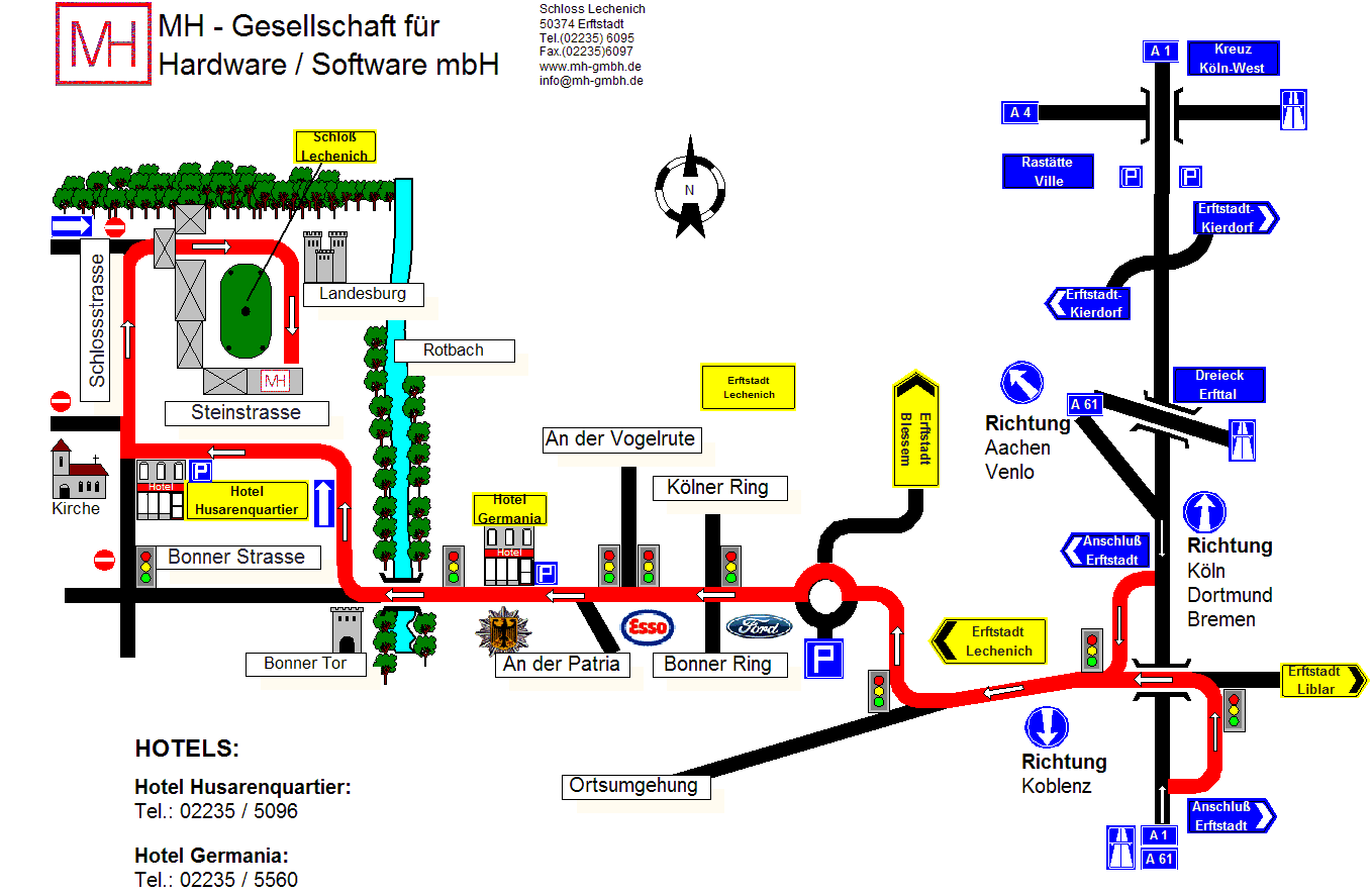 Unser Standort, 30 km südlich von Köln, verfügt über eine günstige Verkehrsanbindung: